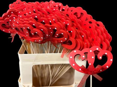 ≥ 100 stks € -,-- Colli 3 Materiaalhoogte 60 cm Inhoud 100 Zalm Mat Rood Mat Aantal 300 Materiaaldiameter 10 cm Fustcode 996 Land van herkomst Nederland Kwaliteit A1 Kweker A&M Import & Decoratie € -,--≥ 100 stks € -,--Hartje Op Stok H%