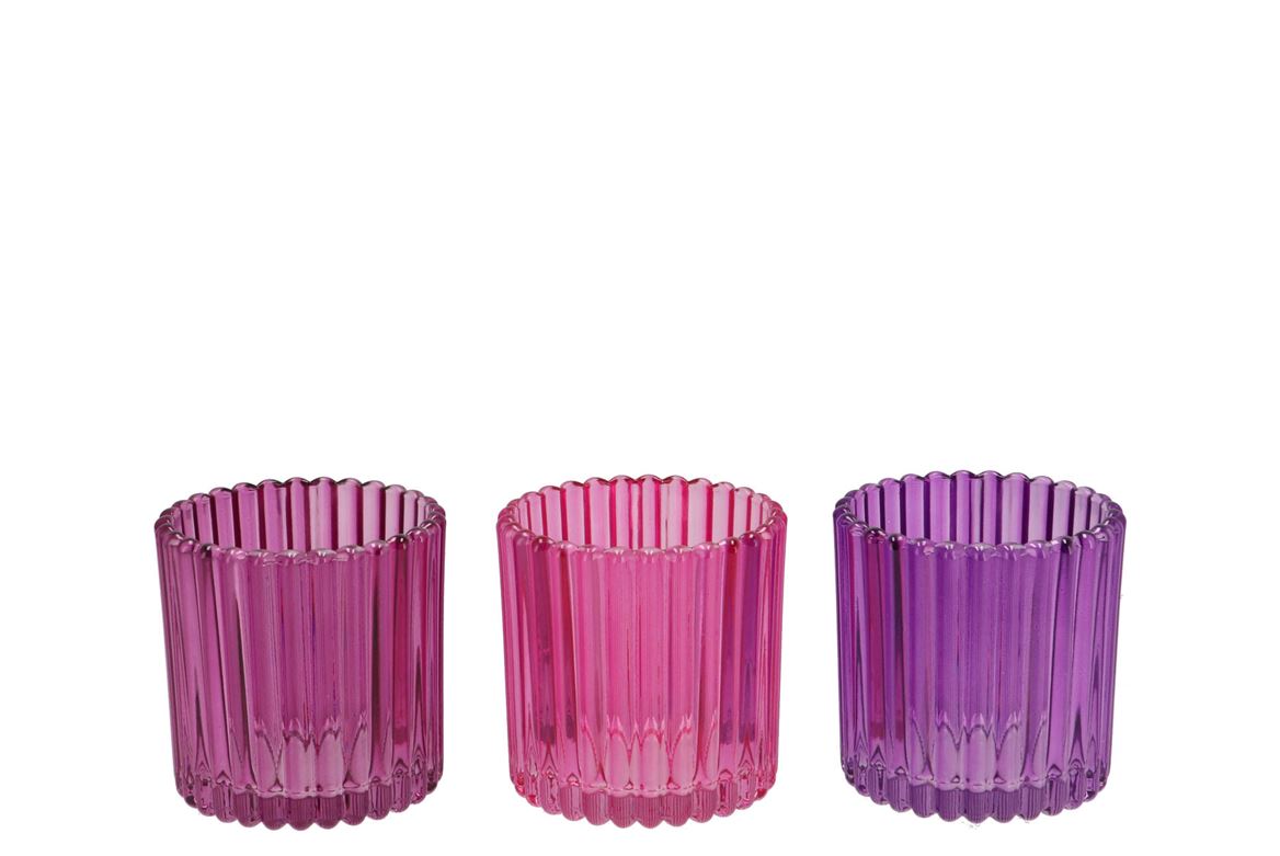 ≥ 24 stks € -,-- Colli 136 Lengte 39 cm Inhoud 24 Land van herkomst China Aantal 3264 Fustcode 999 € -,--≥ 24 stks € -,--Roman Sky Purple Mix Glass Candle Holder Ass 9x9x9